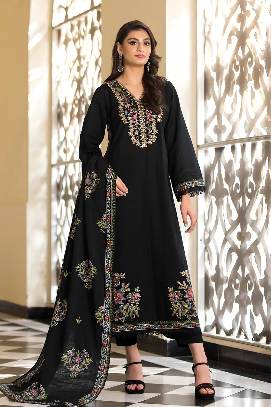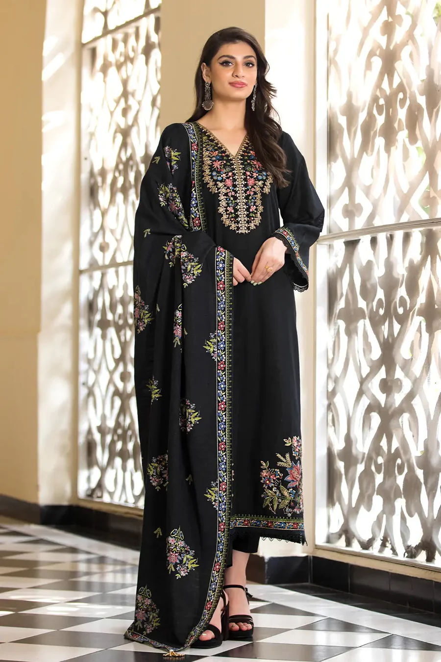 Beautifully embroidered with intricate patterns, adding elegance and sophistication to your attire. Ideal for fall and winter, providing warmth while maintaining breathability.