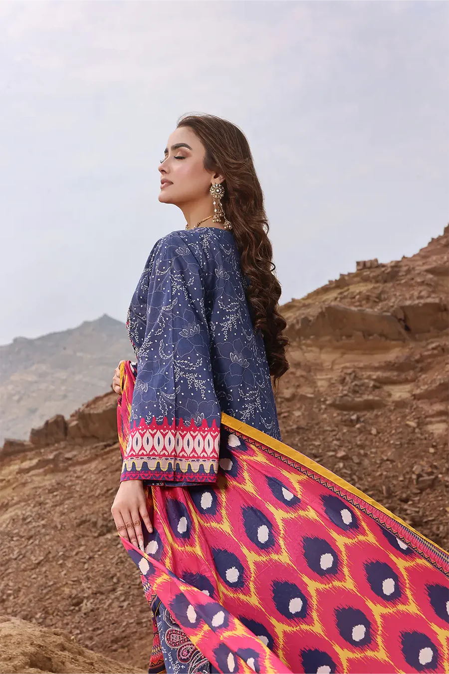 Experience the enchanting summer with KSE-2464 embroidered lawn thee-piece ensemble, featuring delicate tea pink shade. Complete your look with the elegant printed silk dupatta.