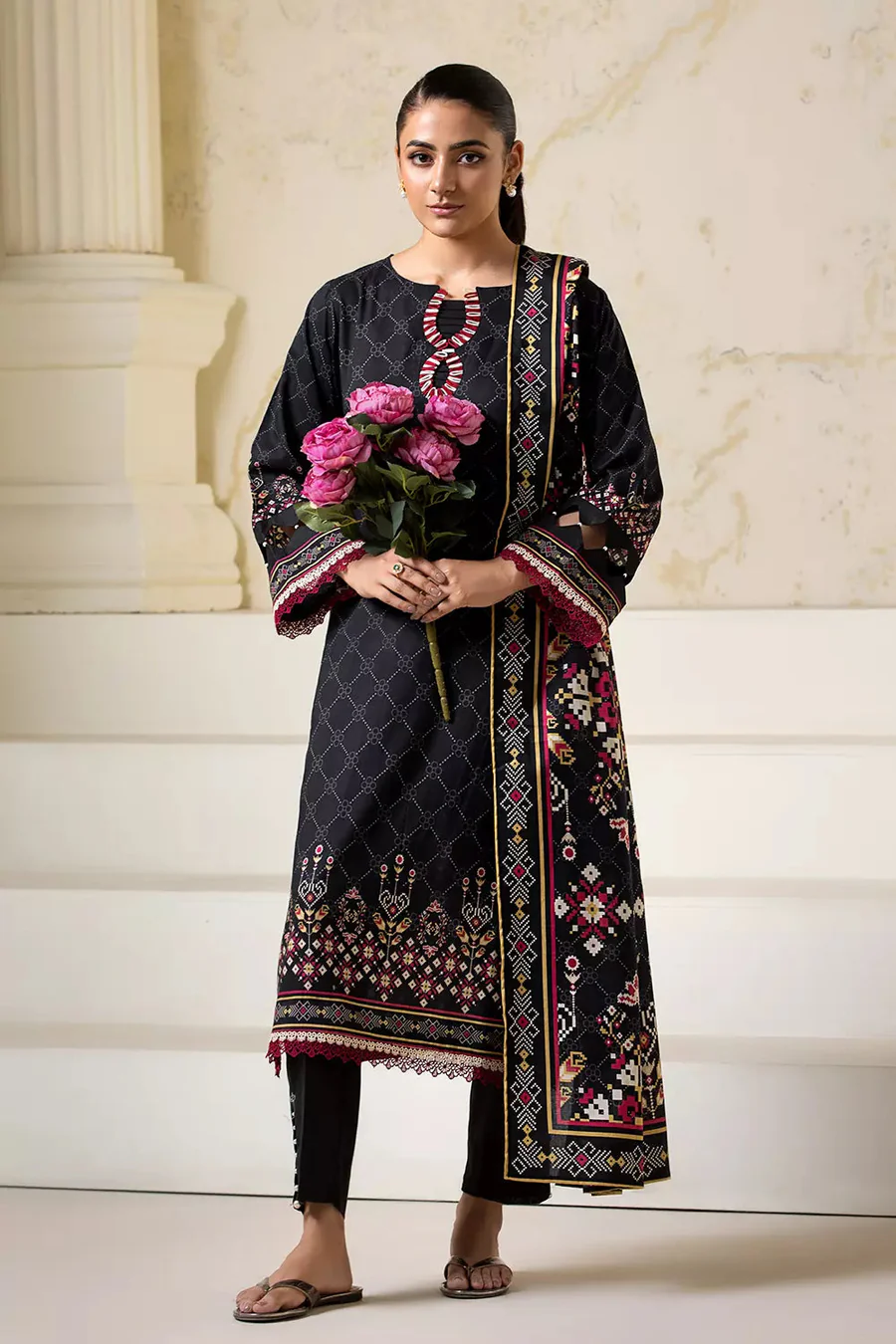 Explore summer vibes 3pc Printed Lawn Suit KLA-2752 this collection features printed lawn shirt and dyed trouser with printed lawn dupatta. Be the essence of elegance with this timeless and versatile ensemble.