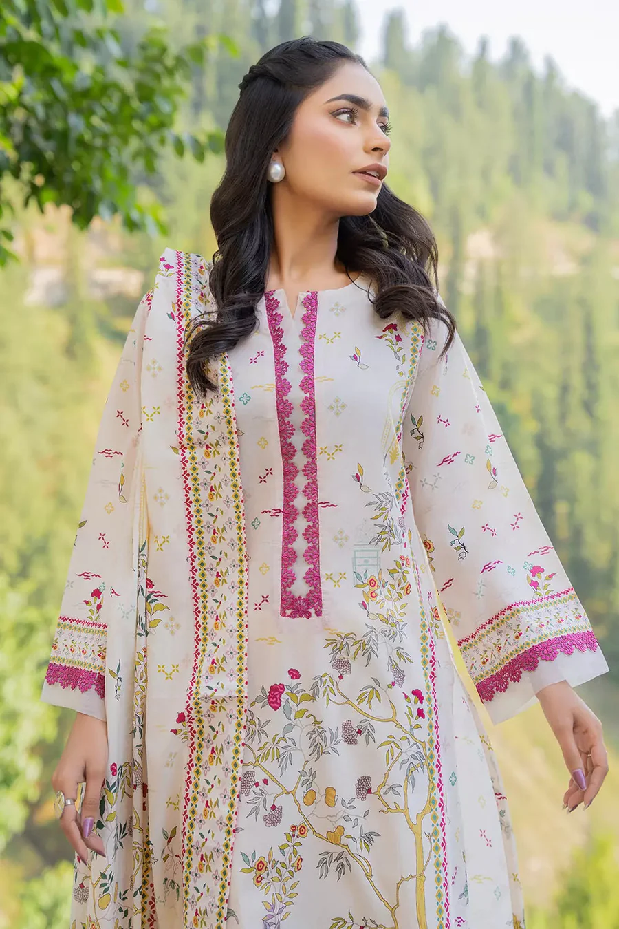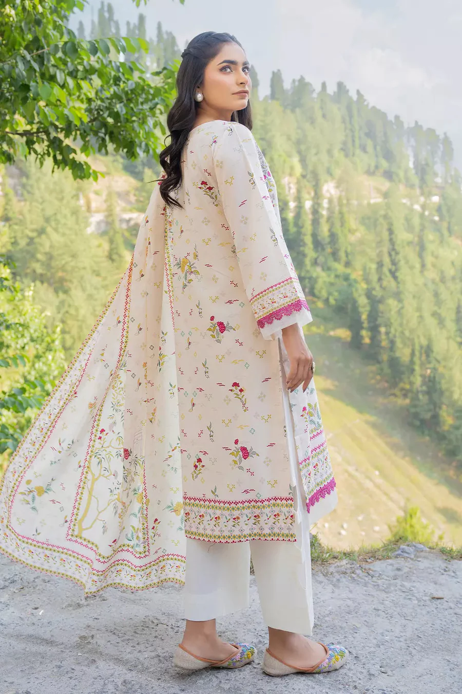 Explore summer vibes 3pc Printed Lawn Suit KLA-2760 this collection features printed lawn shirt and dyed trouser with printed lawn dupatta. Be the essence of elegance with this timeless and versatile ensemble.