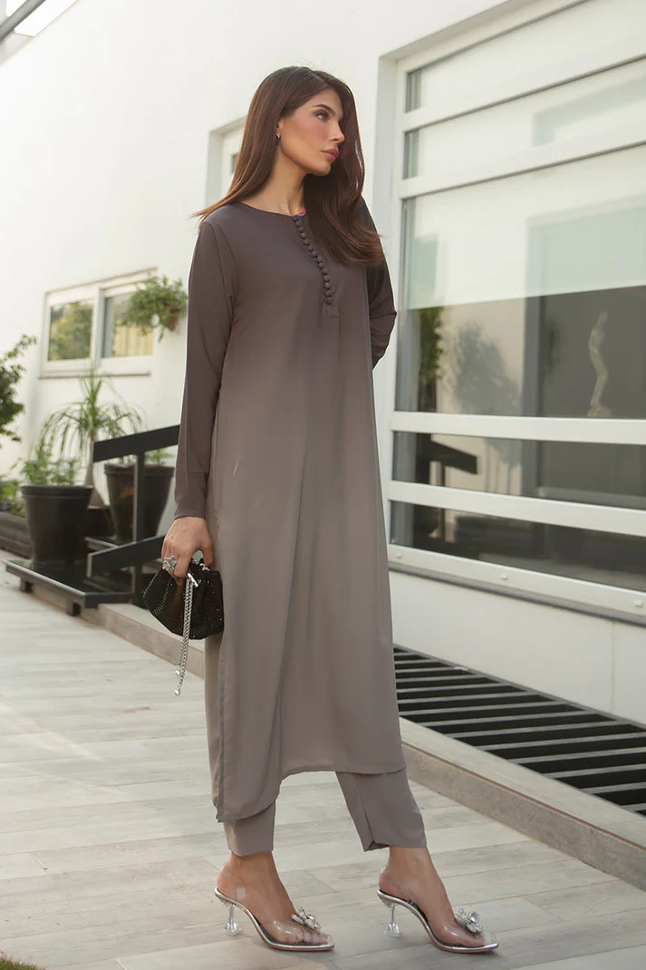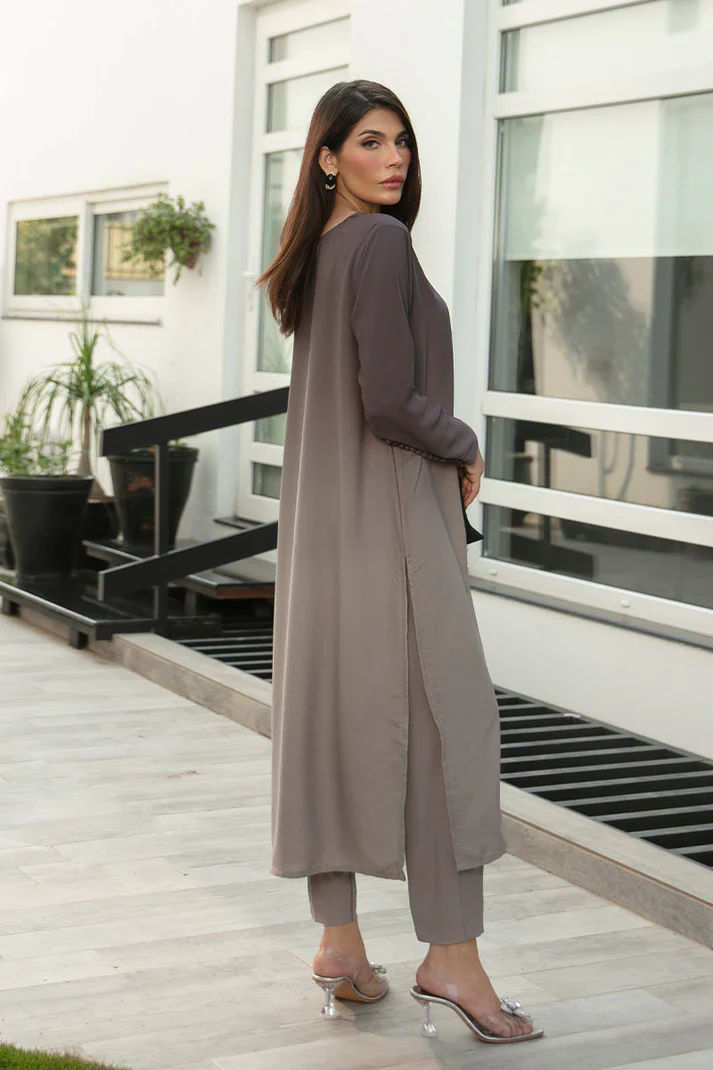 Ashen is a stunning ombré grey georgette suit. Exhibiting a luxurious fall, this suit exudes elegance. It features exquisite button details on the back and sleeves, adding a touch of sophistication to your ensemble. This ensemble comes with straight ombre georgette trousers.