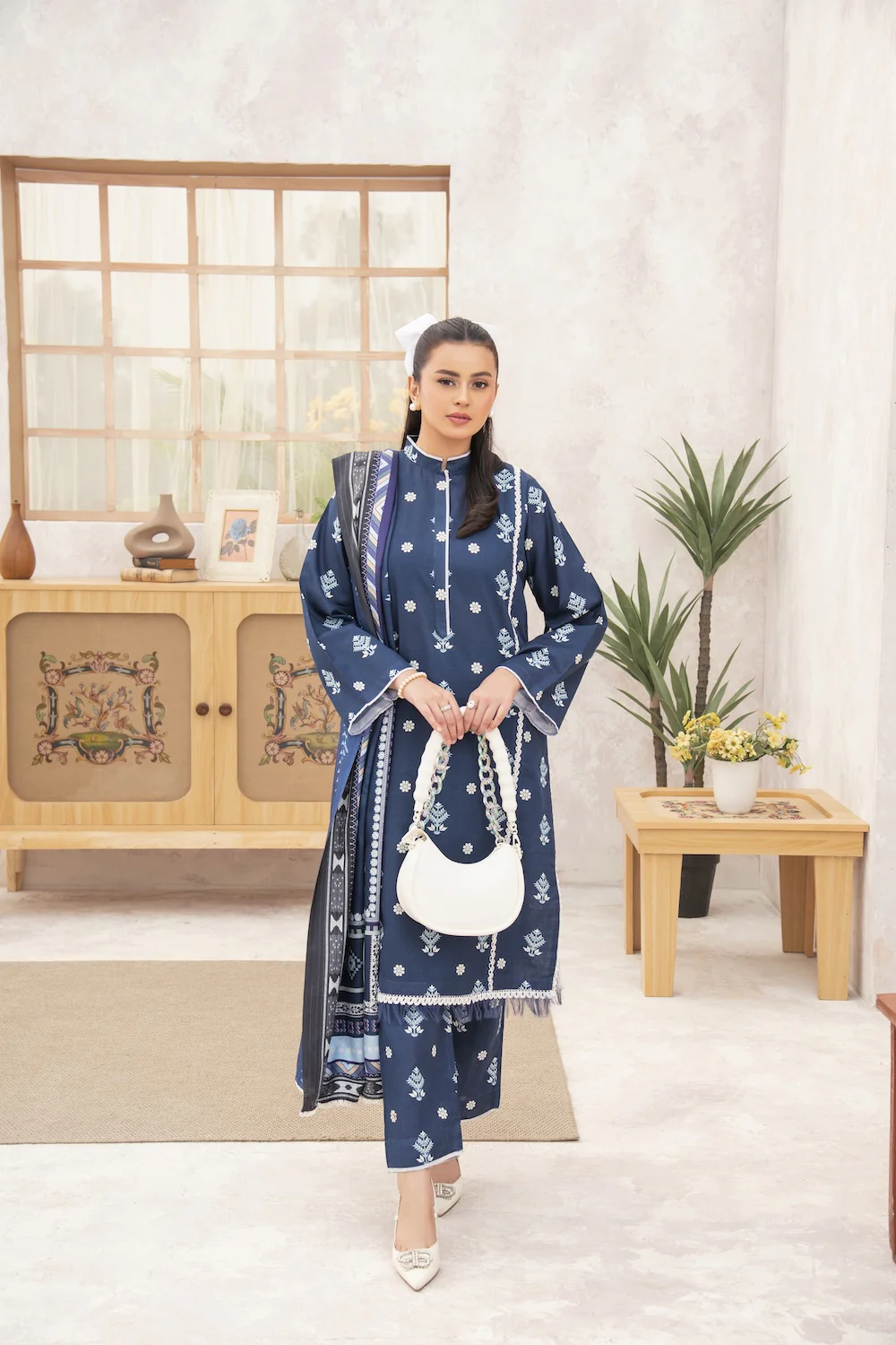 Perfect for the season, Aztec features a majestic winter blue color adorned with white pattern all over. The matching pants and printed double sided shawl makes it a winter essential.
