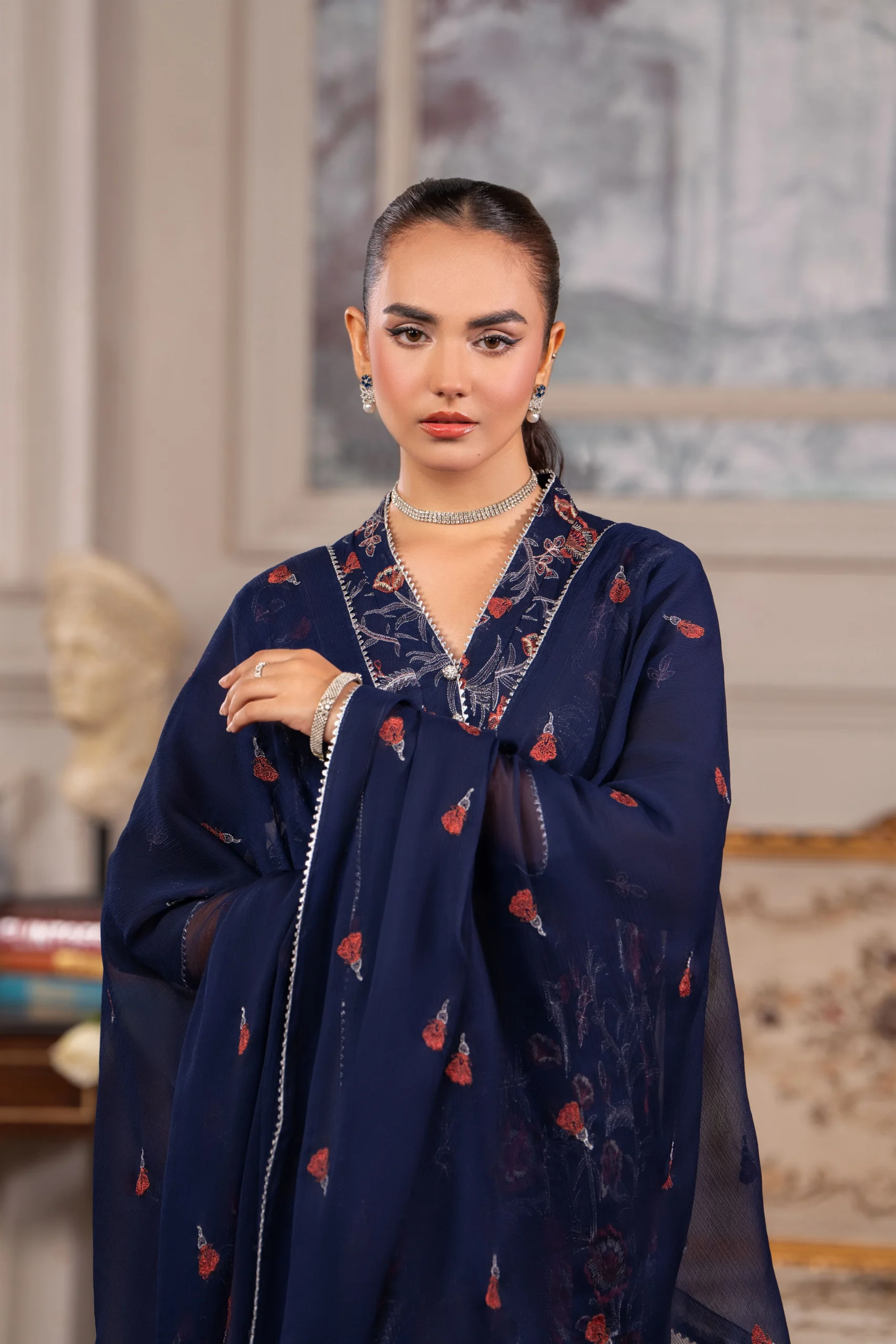 • Embroidered Chiffon Dupatta, 2.75 Yard .