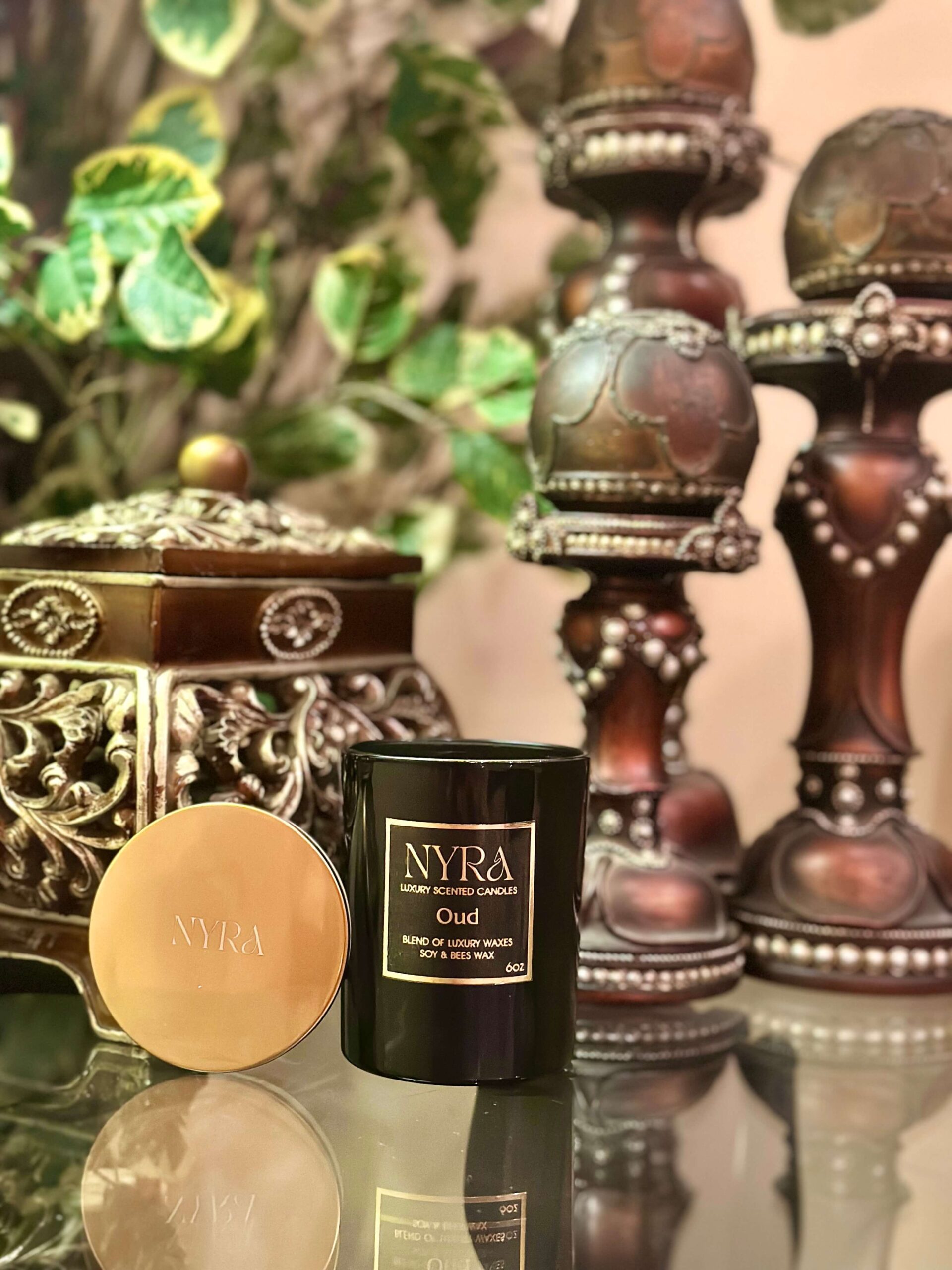 Oud Candle Blend of Luxury Waxes Soy & Bees -Nyra Luxe