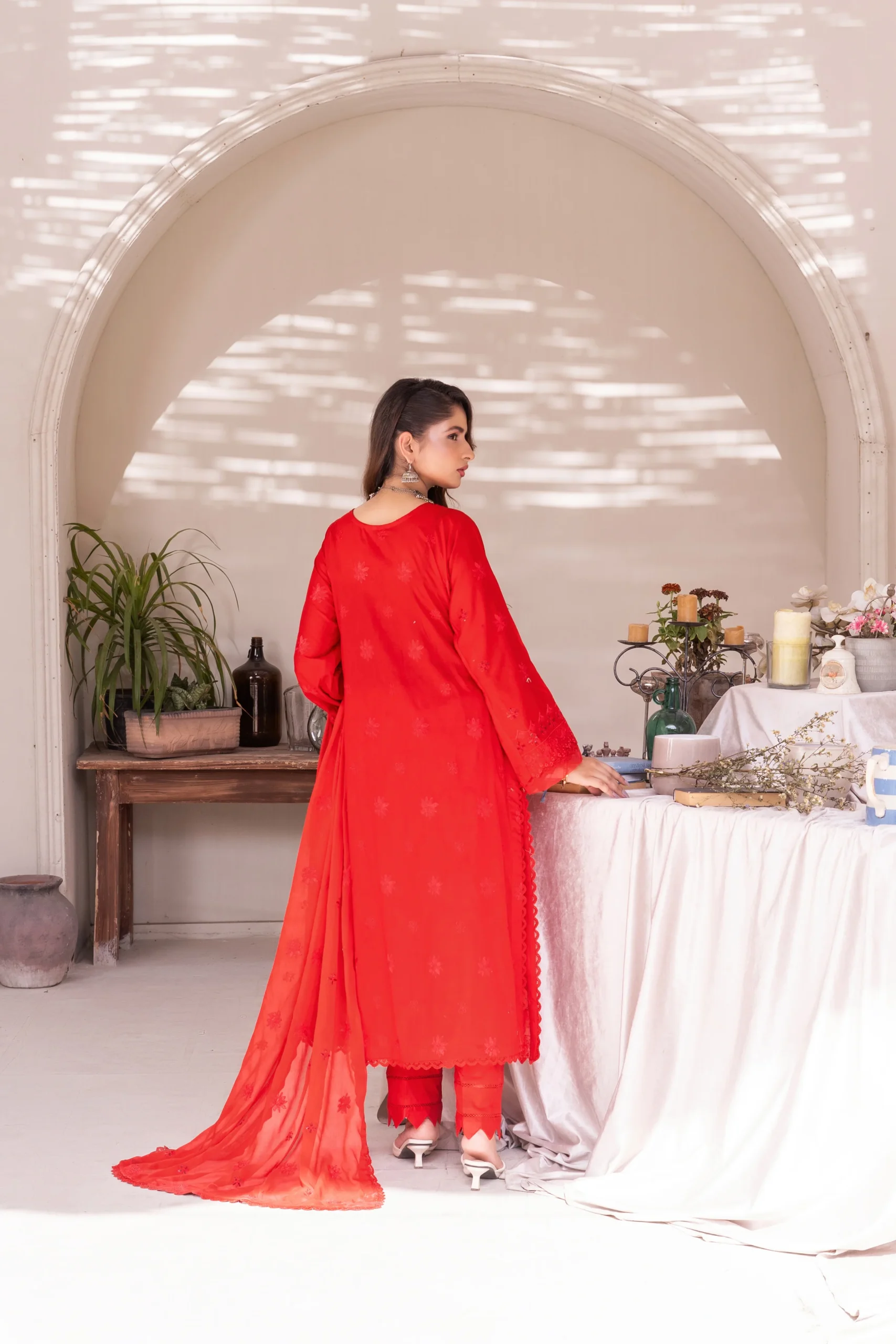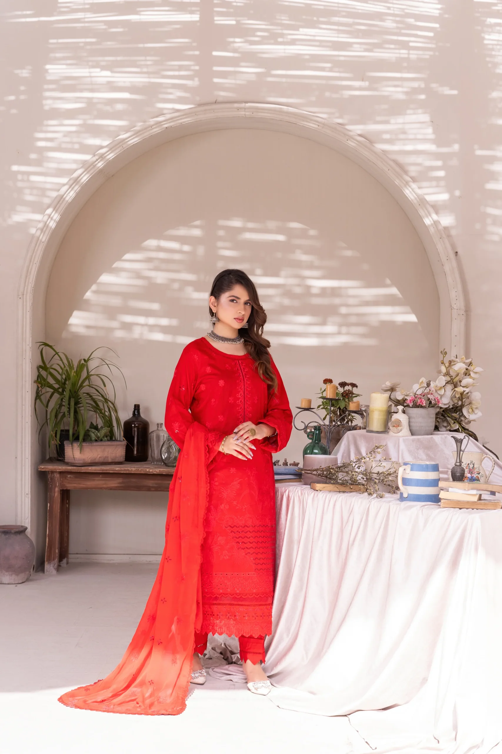 Embroidered Lawn Front Embroidered Lawn Back Embroidered sleeves Embroiderd Organza Front Border Chiffon Embroidered Dupatta Dyed Cambric Trouser Description…