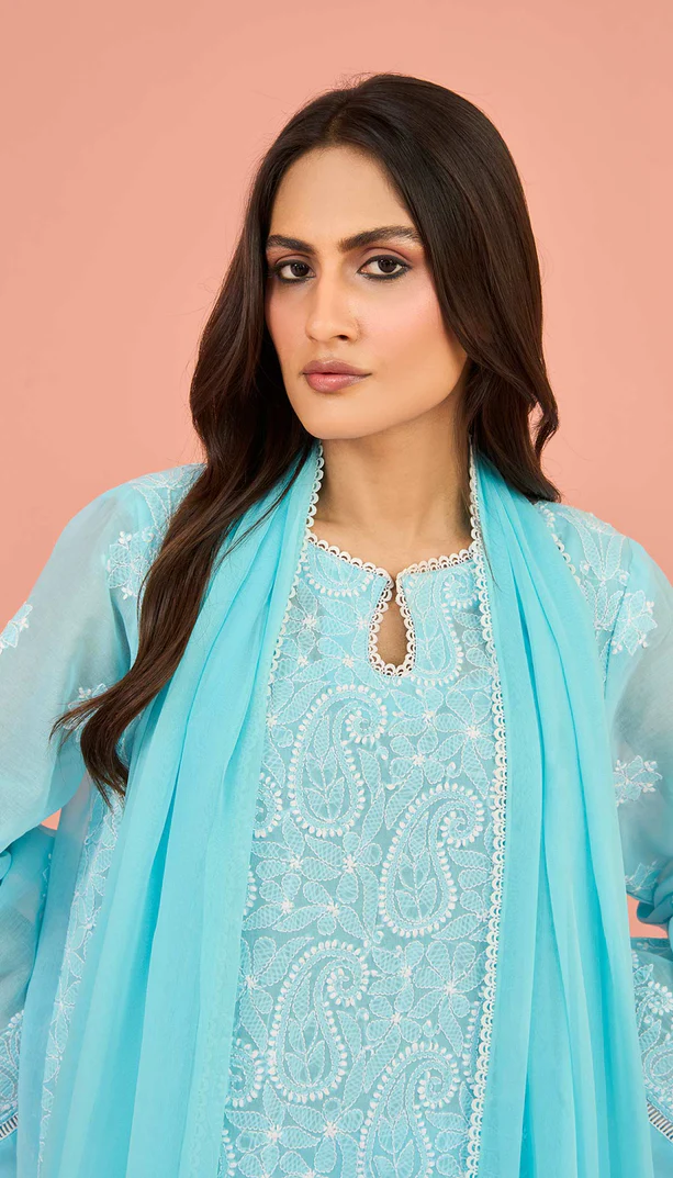 Experience the luxury of handcrafted Indian chikankari, with our exclusive dress “Suhana”. The symmetrical patterns offer a modern twist to the traditional design. It is a perfect addition to your wardrobe, you can wear it at your casual and formal occasions.
